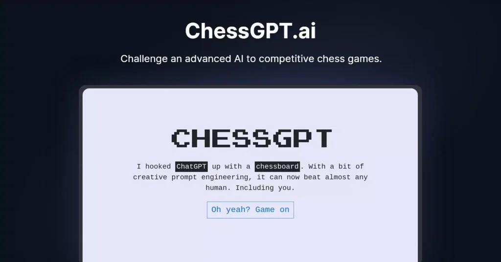 ChessGPT clubs the classic chess game experience with insights provided by AI. The advanced chess bot, ChessGPT can be challenged by anyone, be it a seasoned player or a newbie, and it will adjust its skills accordingly. The game can be a challenging one for anyone with any skill. You will get a tailored experience once you get your hands on this game, the chess engine in ChessGPT is trained to analyze moves, predict strategies, and urge players to improve their skills by providing scope for improvement.